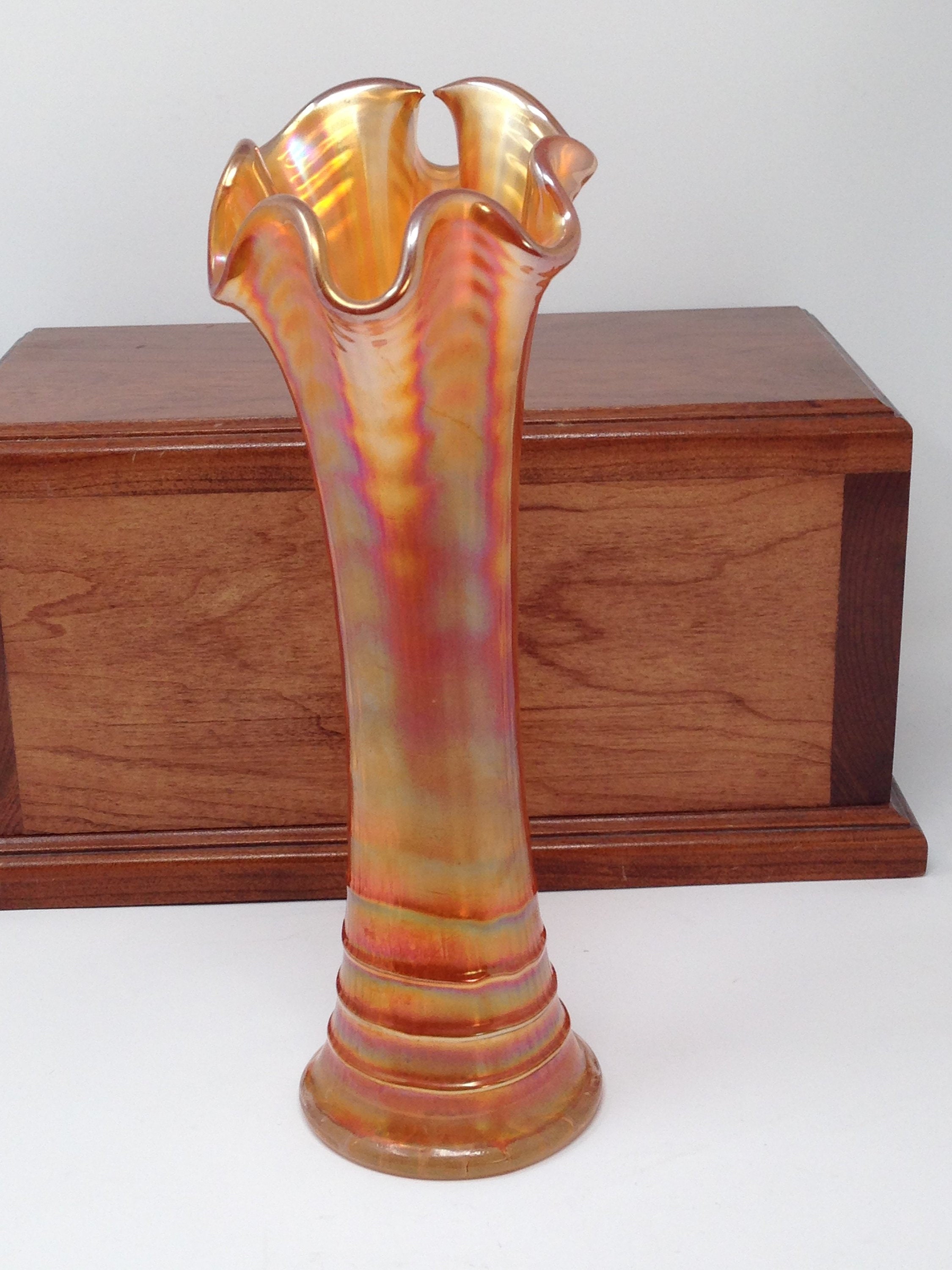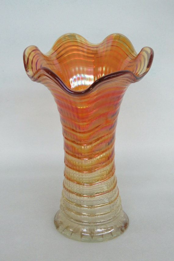 Vintage Imperial Marigold Carnival Glass Vase Etsy Uk