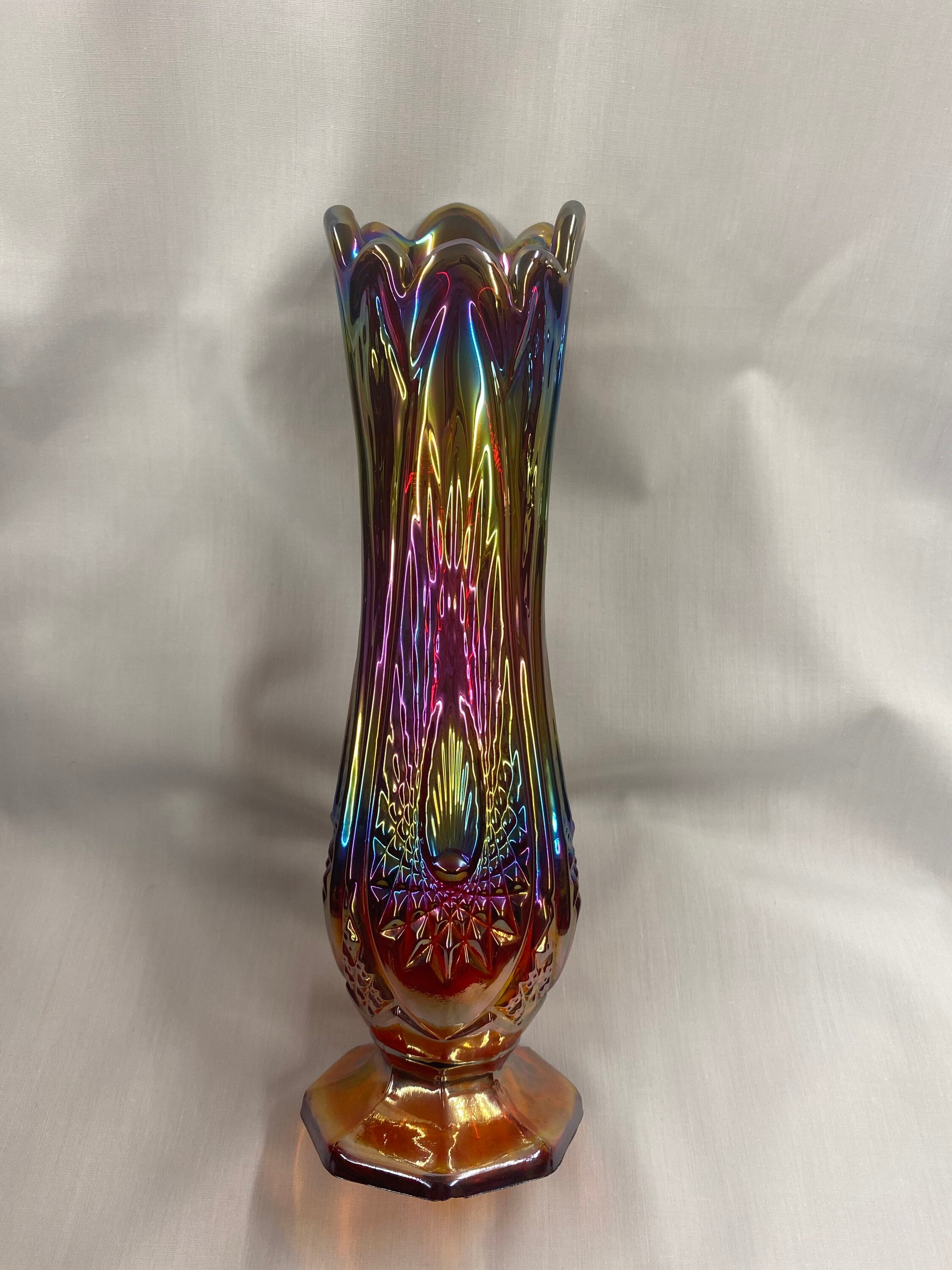 Vintage 8 Imperial Carnival Glass Trumpet Vase Red Orange Ebay
