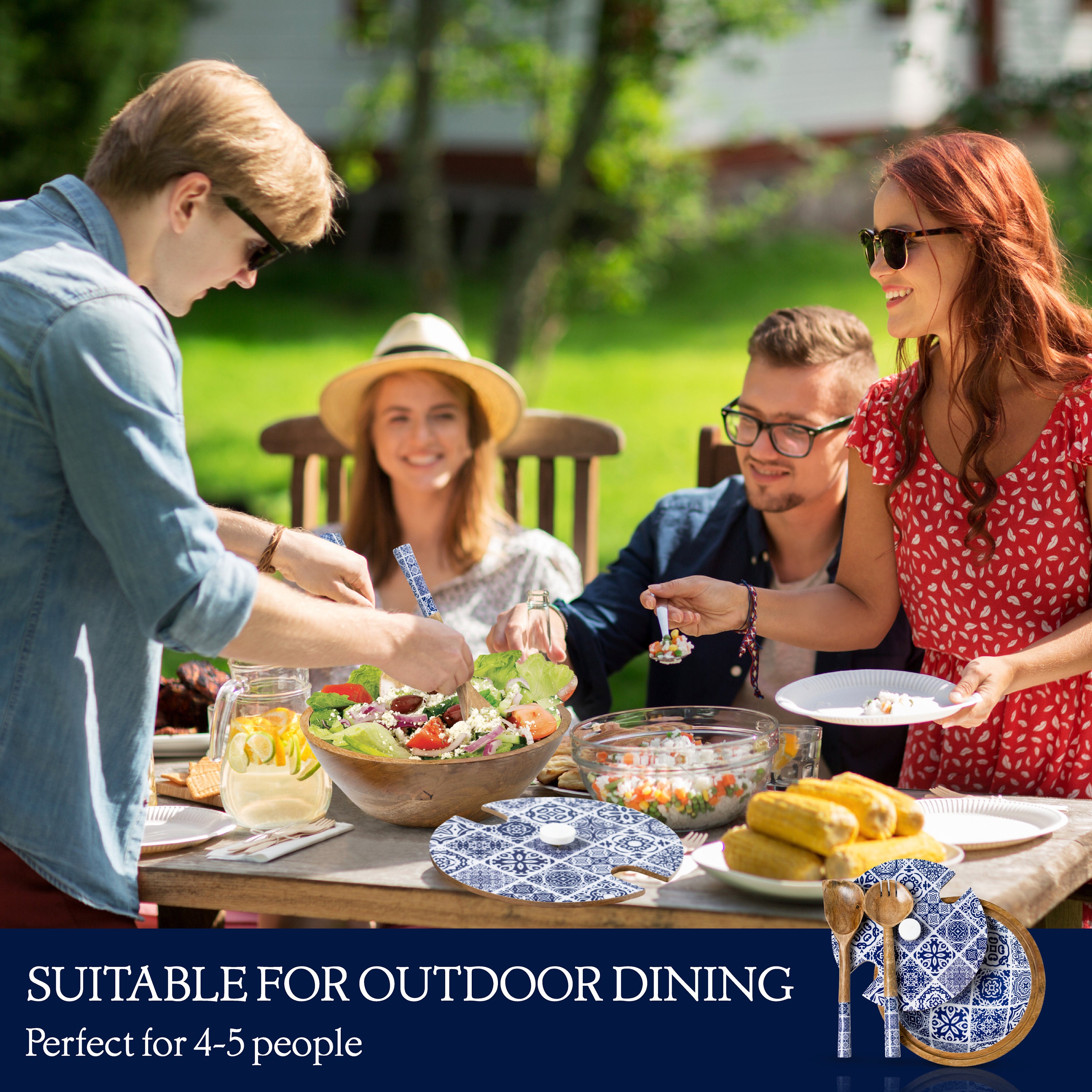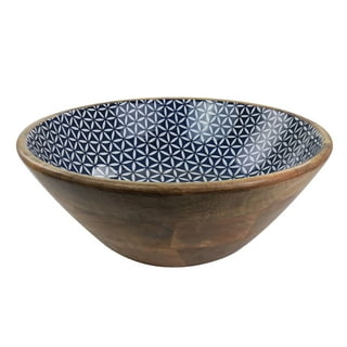 Handmade Mango Wood Decorative Wooden Salad Bowl Set With Matching Servers And Lid Moroccan Blue Tiles Etsy Uk